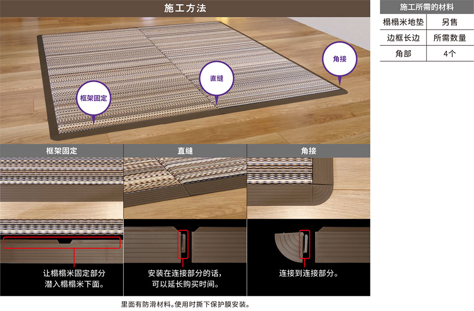 ●設(shè)置榻榻米地墊的話,防滑面上會(huì)有MIGUSASLOPE的痕跡,質(zhì)量沒有問題。
