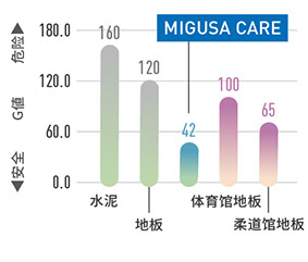 與以跌倒為前提的柔道場的榻榻米相比,可以進一步緩和沖擊的性能
