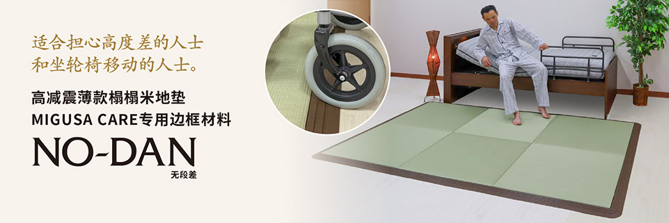 在家中跌倒可能會骨折,是導致需要護理的原因。特別是在室內跌倒導致骨折的事情很多。經過多年的研究,MIGUSA關懷還原了榻榻米原有質感※1。可以緩沖撞擊的榻榻米。這款榻榻米是與醫學工程和生活環境研究領域的專家一起精心研究和開發的。