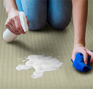 ※農藥、煤油、嬰兒油、苯等可能會導致榻榻米膨脹。此外,熱水壺、鍋、熨斗和香煙也可能導致榻榻米融化。